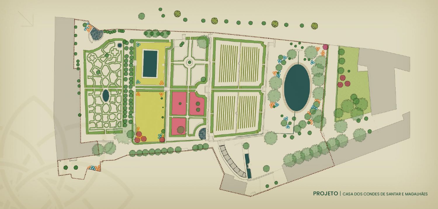 Uma tomada de consciência fez surgir a ideia geradora. Inserida numa região vinhateira, a vila de Santar possui a particularidade única de ser atravessada por terraços de jardins em contínuo: Casa dos Condes de Santar e Magalhães, Casa da Magnólia, Misericórdia, Jardim dos Linhares, Casa Ibérico Nogueira, Casa do Miradouro, Paço dos Cunhas, Casa das Fidalgas e, tanto a montante como a jusante, debruçada sobre jardins de vinhas que marcam fortemente o carácter do lugar. O projecto consistiu em enobrecer e valorizar esta mais ampla singularidade, que se estende urbanisticamente em todos os recantos, deixando-nos descobrir os seus segredos, as suas vistas e os seus encantos. Pretende reforçar o carácter identitário da paisagem e expressar uma narrativa: visitar Santar, vila histórica, através dos seus jardins.