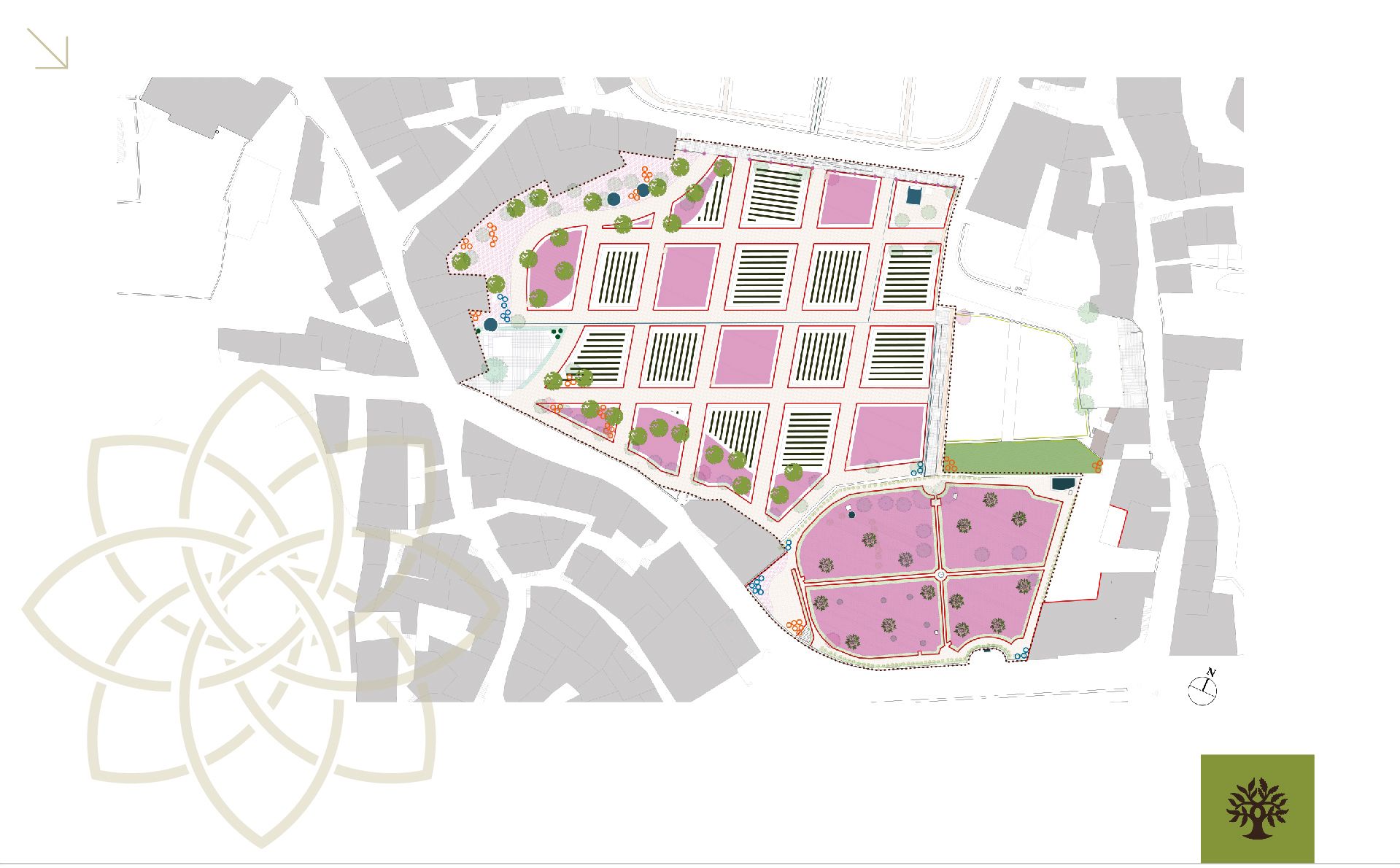 Este espaço, que ocupa na sua totalidade aproximadamente 0,6ha é constituído por 17 parcelas com temáticas de horta, Pomar e plantas aromáticas culinárias. Todas as parcelas são bordeadas por vinha.